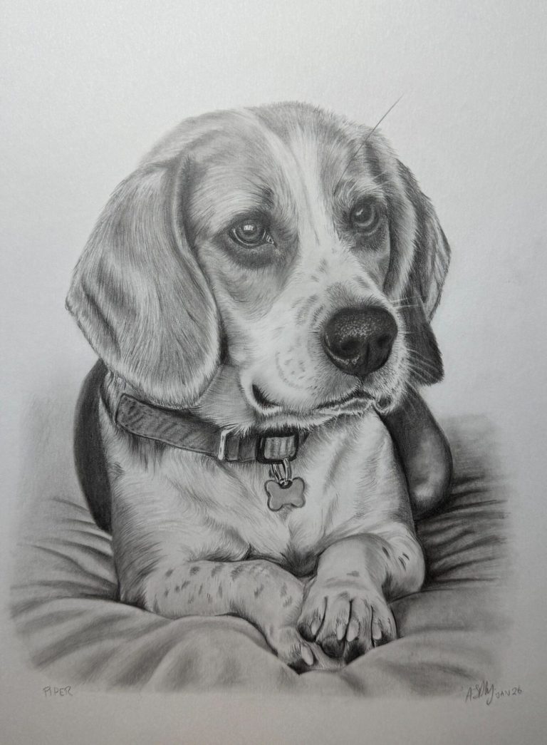 "I am absolutely blown away by the pencil portrait Andy did of our beagle, Piper. He captured her likeness and personality perfectly. Most importantly, my wife absolutely loved it. It’s a beautiful piece of art. I can’t recommend enough"